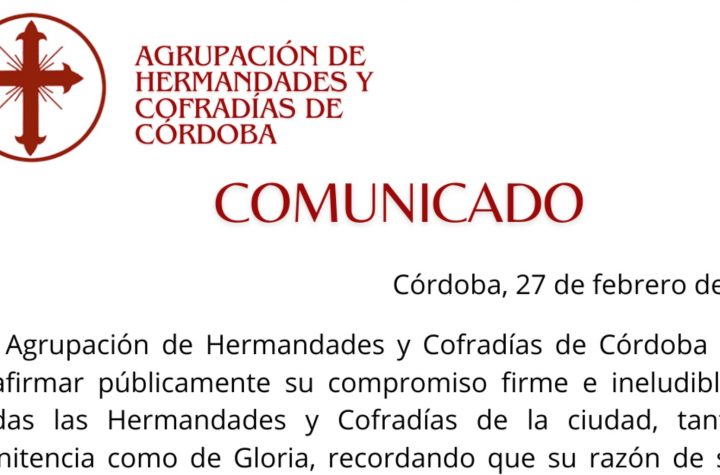 Córdoba, a 27 de febrero de 2026 La Agrupación de Hermandades y Cofradías de...