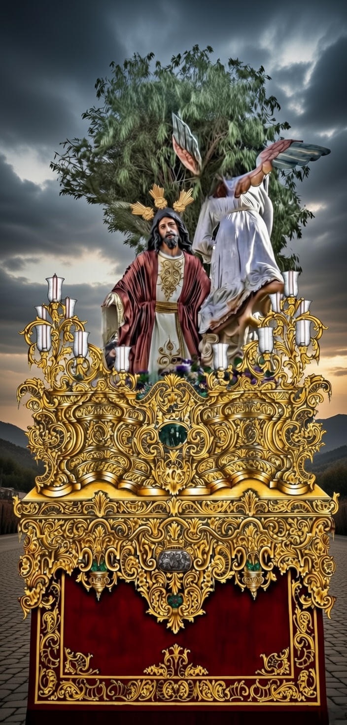 La imaginería menor la realizará el escultor e imaginero gaditano Luis González Rey, quien propone un programa iconográfico donde se representará el servicio y auxilio de los ángeles, contando con escenas del Nuevo Testamento en el Canasto en altorrelieve, del Antiguo Testamento en los respiraderos en bajorrelieves y cuatro cartelas adicionales que recogerán a los Titulares de las sedes canónicas que ha tenido la corporación en su historia: San José, Beato Fray Diego José, San Severiano y Santa Catalina. En los laterales del canasto aparecen los arcángeles San Miguel, San Rafael y San Gabriel, completándolo el menor Uriel.
