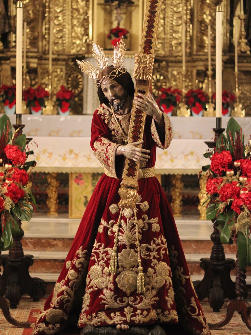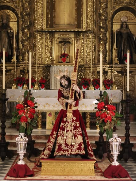 La Hermandad de Nuestro Padre Jesús Nazareno de Chiclana se prepara para vivir una de las jornadas más significativas de su calendario litúrgico: la Festividad del Santísimo Nombre de Jesús. Con motivo de esta celebración, la Sagrada Imagen del Nazareno preside ya el altar efímero instalado en su templo, un montaje cuidado al detalle que invita a la contemplación y a la oración.