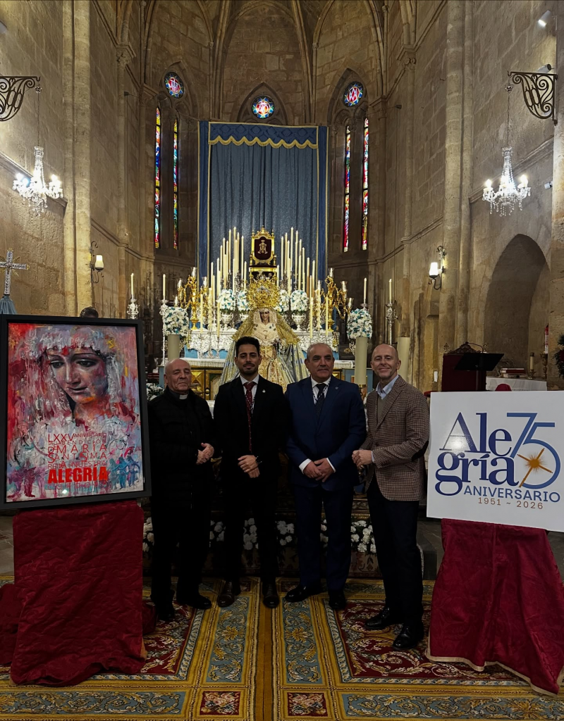 En la jornada de ayer domingo, la Hermandad del Resucitado de Córdoba, al término de la Función Principal en honor a María Santísima, Reina de Nuestra Alegría, tuvo lugar la presentación sel cartel anunciador del 75º Aniversario de la Bendición de su Sagrada Titular, una magnífica obra realizada por Antoine Cas, que recoge con gran sensibilidad la esencia y devoción de este histórico acontecimiento.