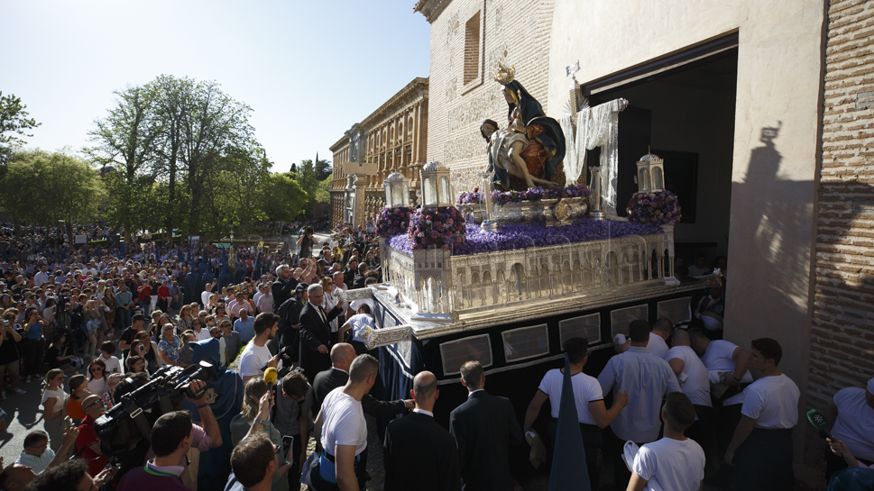 El Sábado Santo 4 de abril de 2026, la hermandad iniciará su recorrido a las 17.00 horas, cuando la Cruz de Guía abandone la Iglesia de Santa María de la Alhambra entre repiques de campanas que, según recogen las crónicas locales, pueden escucharse desde distintos puntos de Granada . Tras avanzar por el Real de la Alhambra, el cortejo alcanzará la Puerta del Vino y la Puerta de la Justicia, donde la estrechez del paso y la monumentalidad del entorno convierten este momento en uno de los más sobrecogedores del día, previsto a las 17.35 horas .