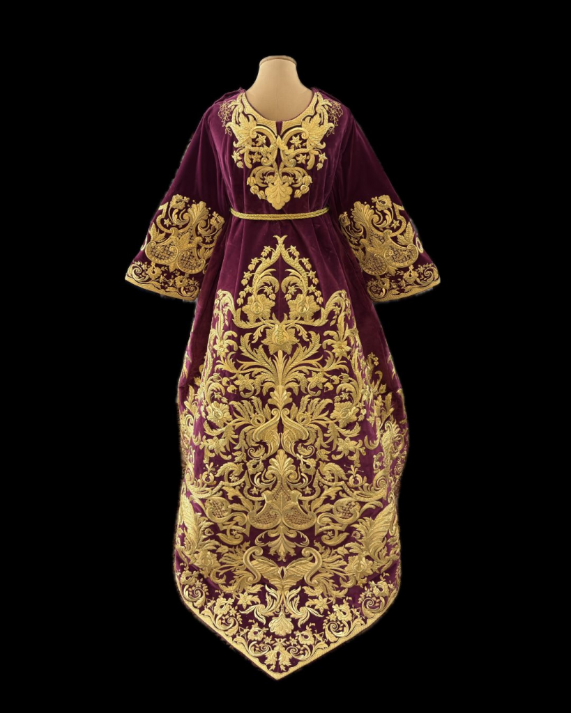 La túnica está bordada en oro fino, con numerosas cartulinas y elementos realizados ex profeso para la obra.