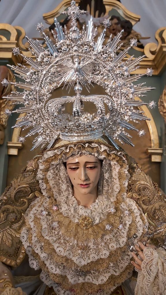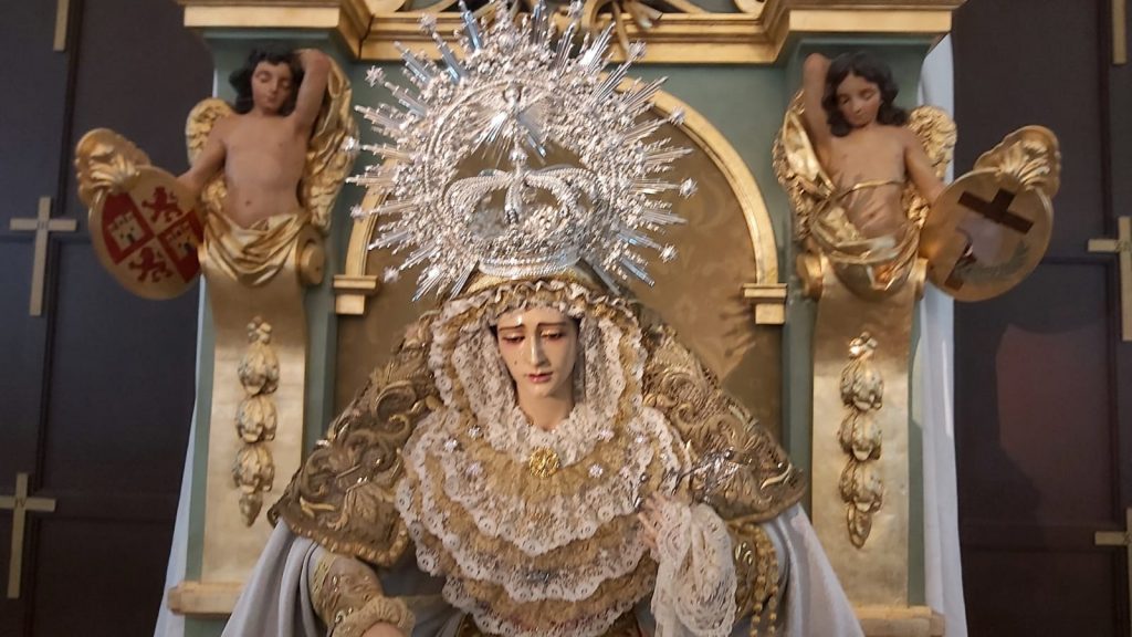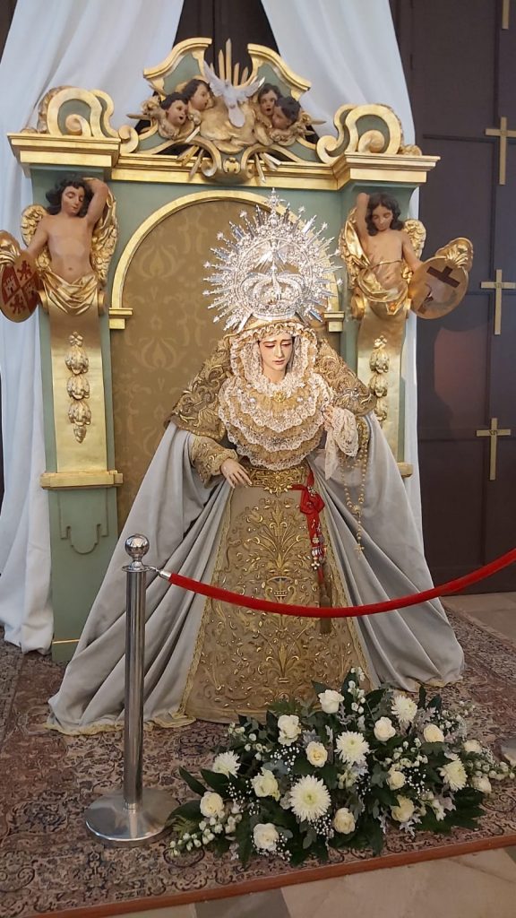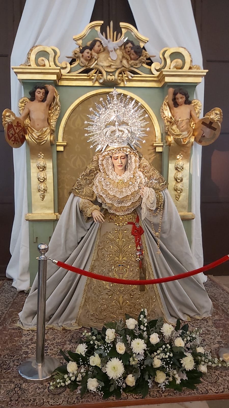 A sus pies estará Nuestra Señora de la Paz ataviada para su Solemne Besamanos que tendrá lugar los días 7 y 8 de Diciembre, como anunciamos anteriormente.