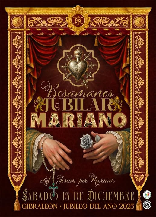 La Unión de Cofradías, junto con los Hermanos y Hermanas Mayores de las Hermandades de Penitencia de Gibraleón, convoca un besamanos mariano extraordinario con motivo del Año Jubilar 2025, en el que se presentarán a la veneración pública las distintas imágenes de María Santísima de nuestra localidad.