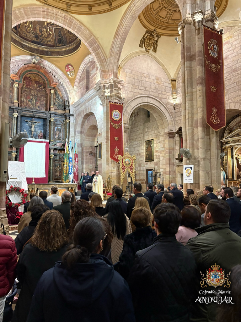 Un templo lleno de cofrades, filiales y hermandades del arciprestazgo ha acompañado este importante acto, presentado por Olivia Aranda y abierto por el Arcipreste de Andújar, D. Carlos Moreno.
