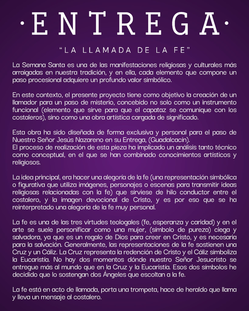 Así mismo, el Escultor e Imaginero Miguel Ángel Caballero Pérez está siendo el encargado de materializar el nuevo martillo en escultura, interpretándolo en su modelado.