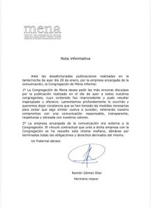La Congregación de Mena ha emitido un comunicado oficial en respuesta a una grave incidencia ocurrida el pasado 29 de enero, cuando una publicación en sus canales digitales, gestionados por una empresa externa, generó una fuerte polémica entre sus congregantes. El contenido difundido fue calificado como improcedente, inapropiado e incluso ofensivo, lo que obligó a la institución a tomar medidas inmediatas para preservar su imagen y reafirmar sus valores.