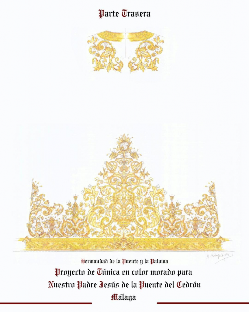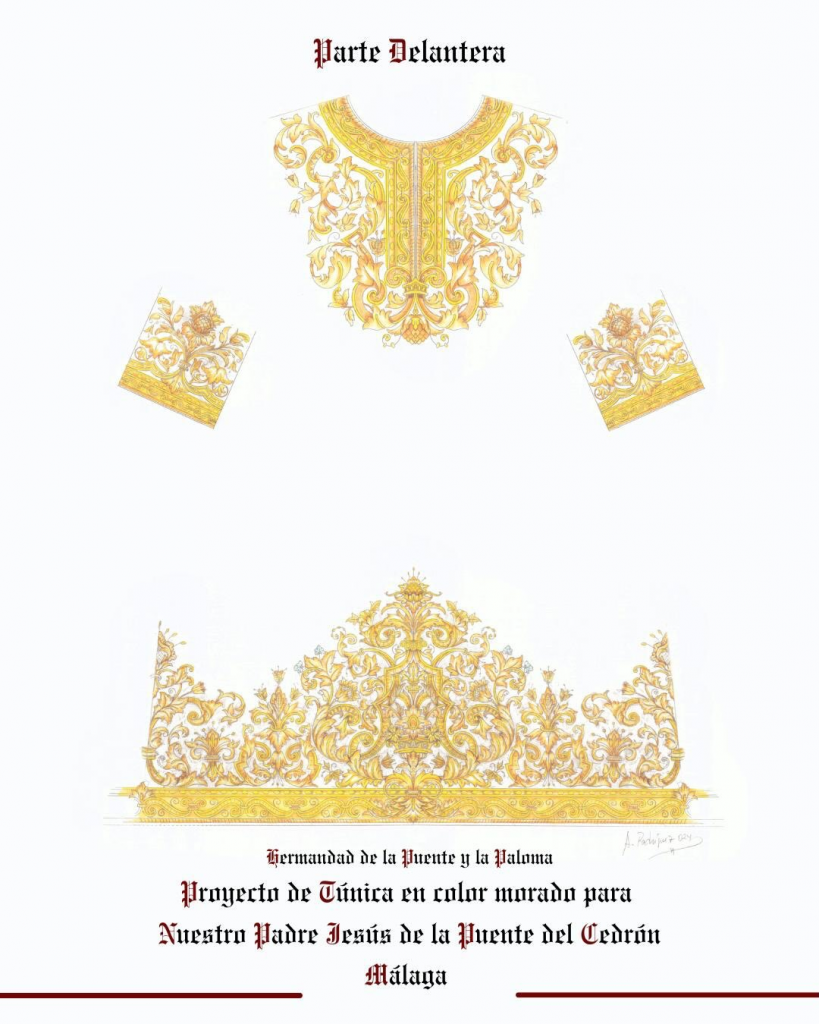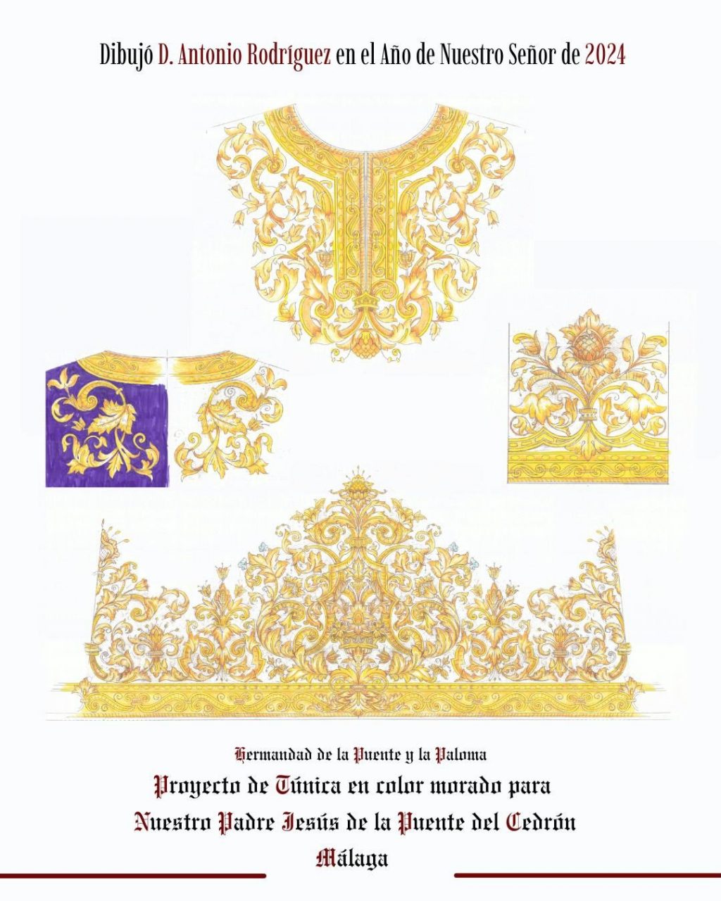 La Hermandad de la Paloma de Málaga presentó en la jornada de ayer sábado el diseño de la nueva Túnica de Nuestro Padre Jesús de la Puente del Cedrón diseñada por D. Antonio Rodríguez y será bordada por el taller D. Jesús Díaz- Hellín