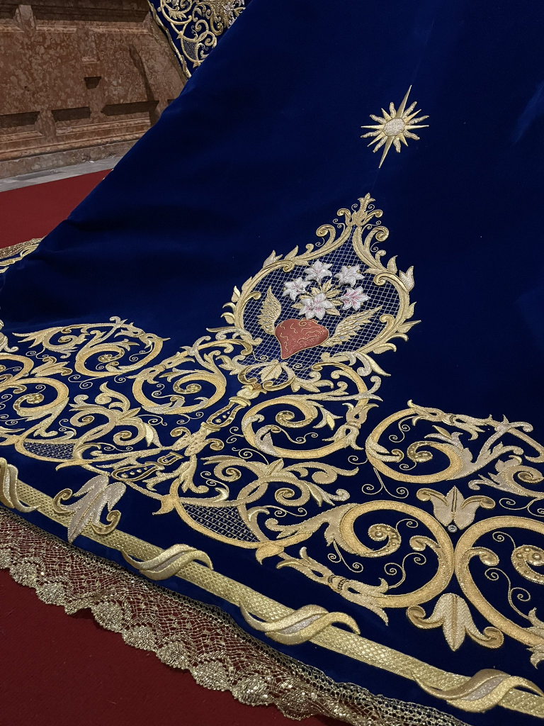 En la tarde de hoy, al término del Solemne Triduo que celebra la Hermandad de la Sed de Sevilla en honor de Santa María de Consolación Madre de la Iglesia, un manto -donación del grupo de hermanos “El Armario de Amparo”- y una toca de sobremanto.