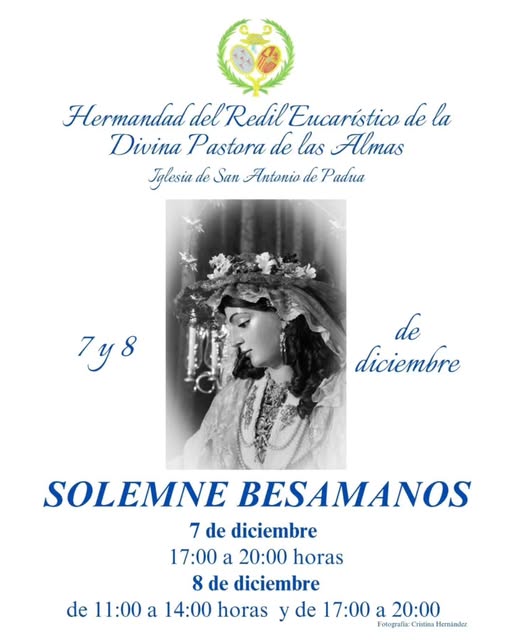 La Hermandad de la Divina Pastora de San Antonio en Sevilla celebrará los días 7 y 8 de diciembre Solemne Besamanos de su Sagrada Titular Mariana