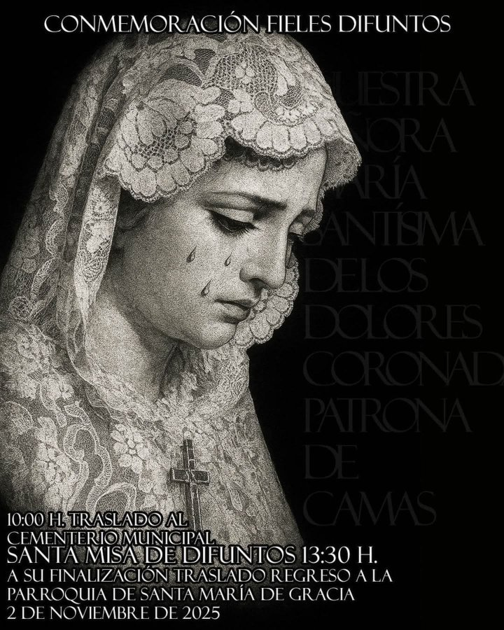 Con motivo de la conmemoración de los fieles difuntos, la Stma. Virgen de los Dolores, Patrona de la localidad sevillana de Camas será trasladada al cementerio municipal de Ntra. Sra. de los Dolores y San Sebastián en la jornada de hoy, 2 de noviembre a partir de las 10 de la mañana.