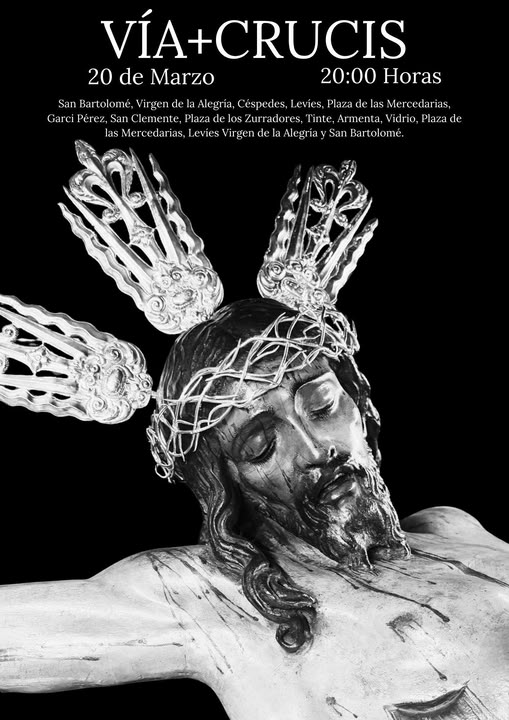 El ejercicio piadoso seguirá el recorrido previsto, que partirá desde San Bartolomé para continuar por Virgen de la Alegría, Céspedes, Levies, Plaza de las Mercedarias, Garci Pérez, San Clemente, Plaza de los Zurraadores, Tinte, Armenta, Vidrio, Plaza de las Mercedarias, Levies, Virgen de la Alegría y regreso a San Bartolomé. Un itinerario cargado de simbolismo, que discurre por calles estrechas y silenciosas donde el rezo de las estaciones adquiere una intensidad especial. La sobriedad del cortejo, unido al respeto de los fieles, convierte este acto en uno de los momentos más íntimos de la preparación cuaresmal.