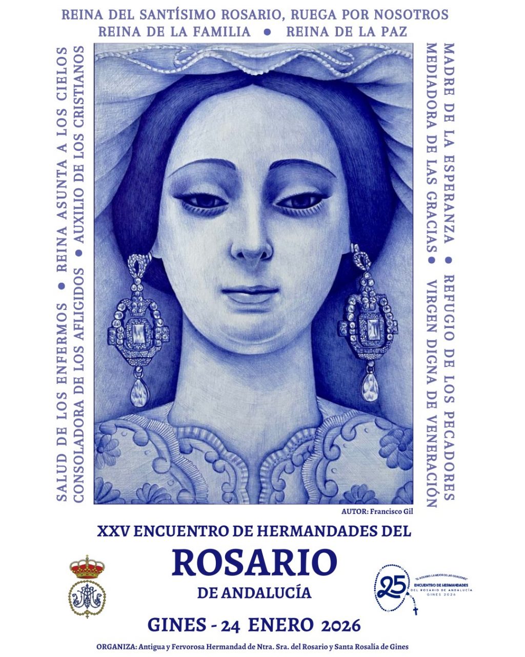 La localidad sevillana de Gines se convertirá el próximo sábado 24 de enero en epicentro de la devoción mariana en Andalucía con la celebración del XXV Encuentro Andaluz de Hermandades del Rosario, una cita plenamente consolidada dentro del calendario cofrade regional y que este año alcanza su vigésimo quinto aniversario.