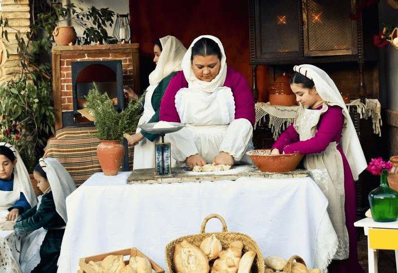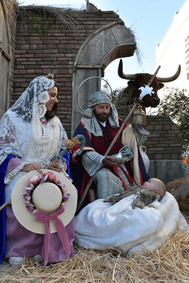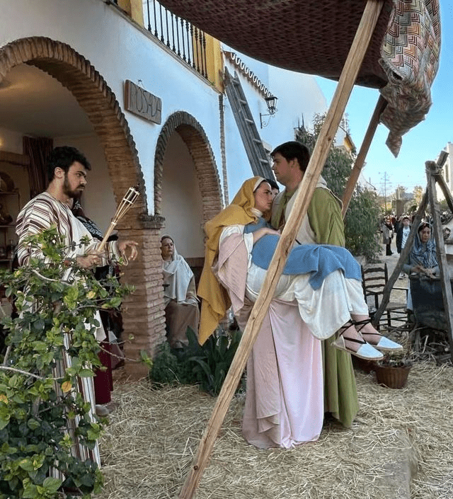 Las escenas aprovechan esa particular configuración, haciendo de los porches de las casas grandes lienzos, vivientes y estáticos, que relatan la historia. Podría compararse con un museo al aire libre dedicado a narrar el nacimiento del Señor mediante grandes cuadros pintados con personas.