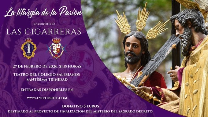 La Hermandad de la Trinidad celebrará el próximo viernes 27 de febrero de 2026, víspera del Día de Andalucía, un concierto extraordinario a cargo de la Banda de Cornetas y Tambores Nuestra Señora de la Victoria “Las Cigarreras”, una de las formaciones musicales más reconocidas del panorama cofrade. El acto llevará por título “La liturgia de la Pasión” y se presenta como una de las citas destacadas de la Cuaresma sevillana.