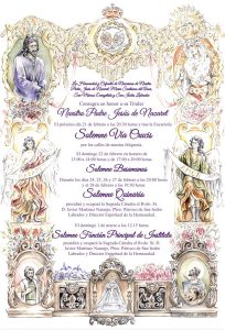 El programa de cultos culminará el domingo 1 de marzo, a las 12:15 horas, con la celebración de la Solemne Función Principal de Instituto, en la que la hermandad realizará pública protestación de fe, cerrando así los actos en honor a Nuestro Padre Jesús de Nazaret.