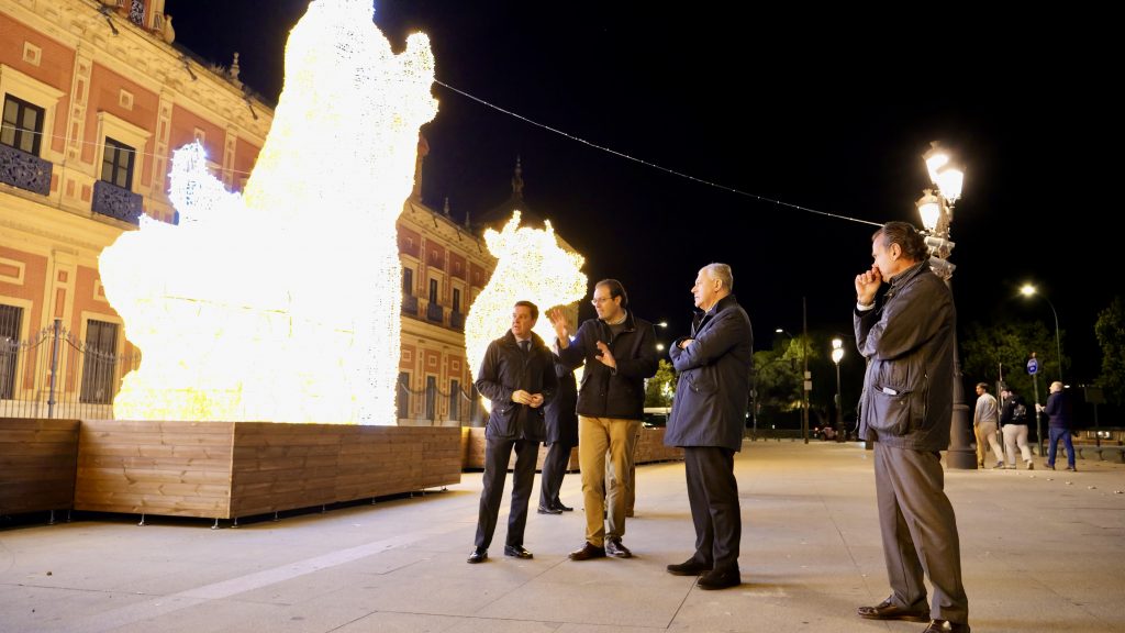 La ciudad de Sevilla estrenará esta Navidad un diseño totalmente renovado en la Avenida de Roma con un espectacular portal de Belén de grandes dimensiones ubicado a los pies del Palacio de San Telmo. Con figuras que alcanzan los 9,80 metros en el caso de San José y los 5,10 metros en el del buey, este conjunto se convierte en el mayor Belén iluminado de España. Además, la ciudad recupera este año motivos sacros navideños en las calles Hernando Colón, Reyes Católicos y San Pablo, todos ellos elaborados con iluminación de leds cálidos.