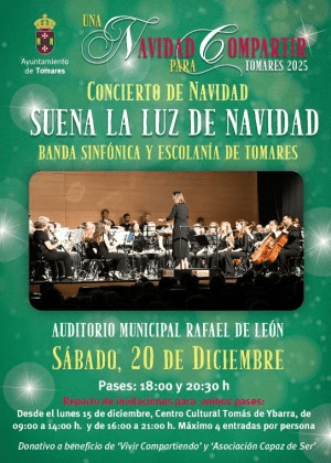 Llega a Tomares uno de los eventos más esperados por los tomareños cada Navidad: El tradicional y entrañable Concierto de Navidad de la Sinfónica (BST) y la Escolanía de Tomares que llenará de momentos mágicos el Auditorio Municipal Rafael de León. Bajo el título “Suena la luz de la Navidad”, contará con dos pases: a las 18 horas y 20:30 horas. Desde el lunes 15 de diciembre, se pueden recoger las invitaciones en el Centro Cultural Tomás de Ybarra (C/ Concepción Ibarra, 1), de 9 a 14 y de 16 a 21 horas (4 por persona). Donativo a beneficio de “Vivir Compartiendo” y Asociación “Capaz de Ser”