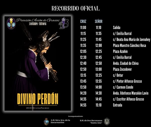 Contará con el acompañamiento musical de la Agrupación Musical Nuestra Señora de la Encarnación de Sevilla y la Banda Música Santa Ana de Dos Hermanas