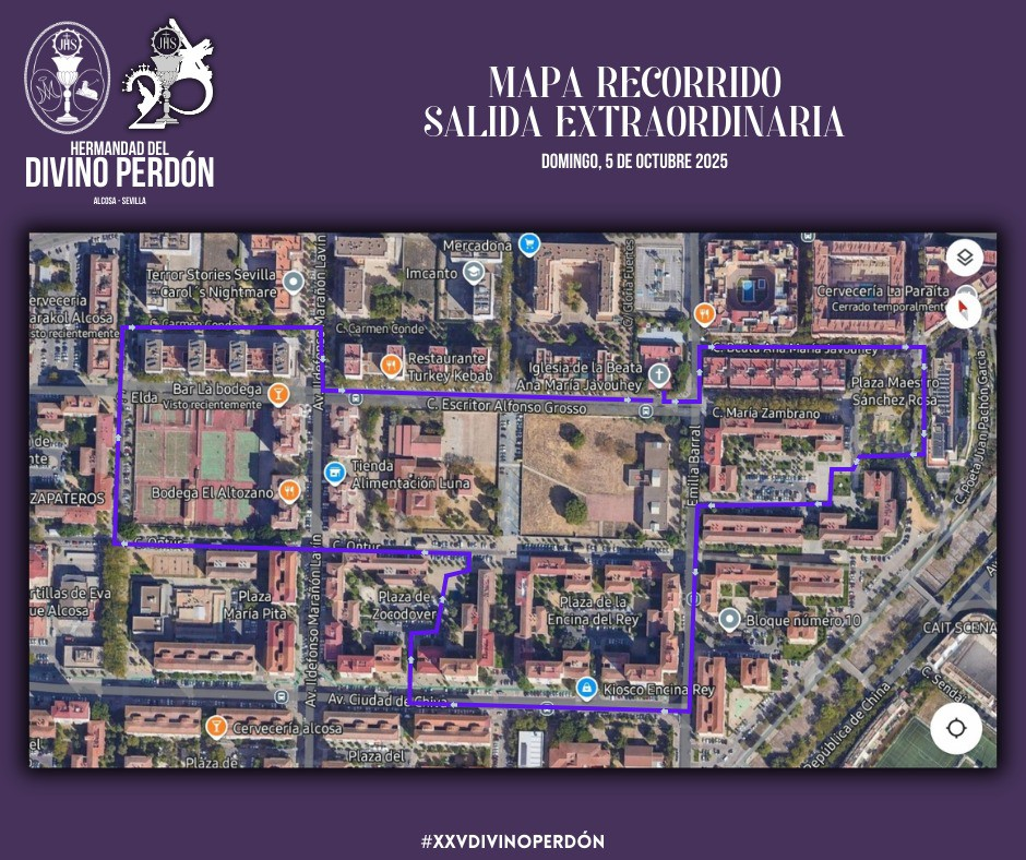La Hermandad del Divino Perdón del barrio sevillano del Parque Alcosa celebrará procesión de Ntro. Padre Jesús del Divino Perdón en Acción de Gracias por el XXV de esta corporación el próximo domingo 5 de Octubre.