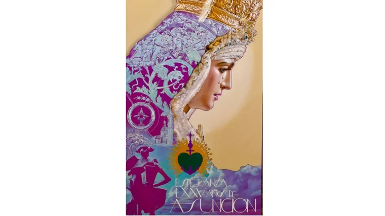La Esperanza de Triana ha presentado en la capilla de los Marineros el cartel que conmemora el 75 aniversario del dogma de la Asunción, una obra del pintor José Cabrera Lasso de la Vega, un acontecimiento que dará comienzo este miércoles con el traslado de la Virgen a San Jacinto.