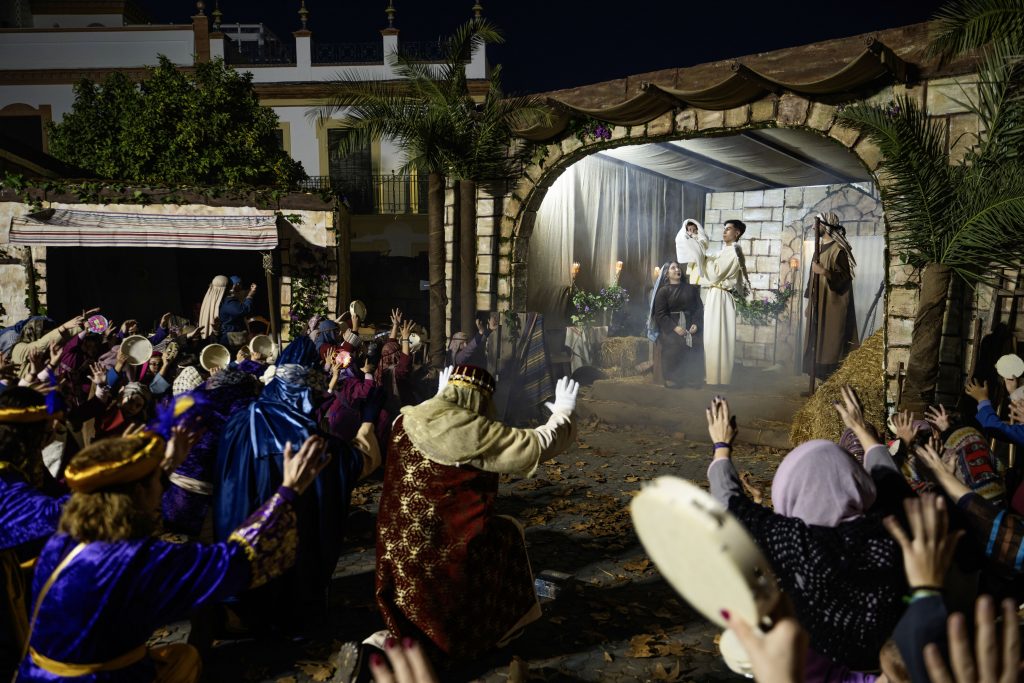 Un prodigioso trabajo de organización y logística que consigue transformar calles de reminiscencia árabe – ya que este era el núcleo poblacional en época de dominación musulmana –, de calles estrechas y sinuosas, para recrear las ciudades de Nazaret y Belén de hace dos milenios.