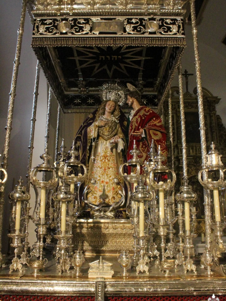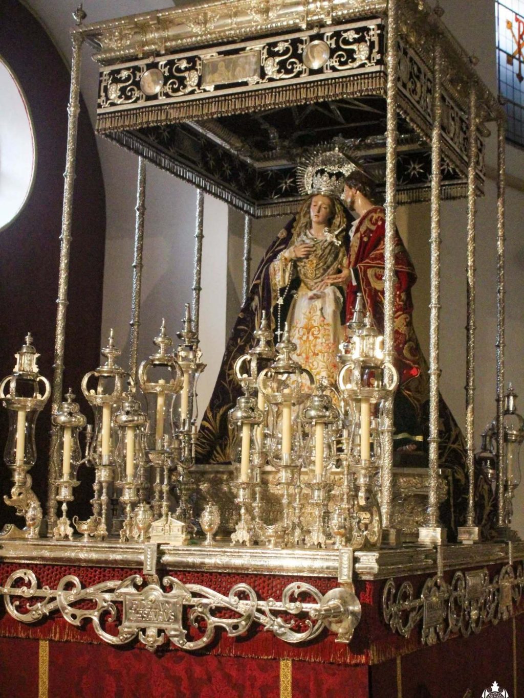 Se podrá contemplar la sagrada imagen mariana que fue bendecida en 2023 bajo palio en un paso que ha sido cedido para esta ocasión por la Fraternidad de María Santísima de los Dolores de Carmona.