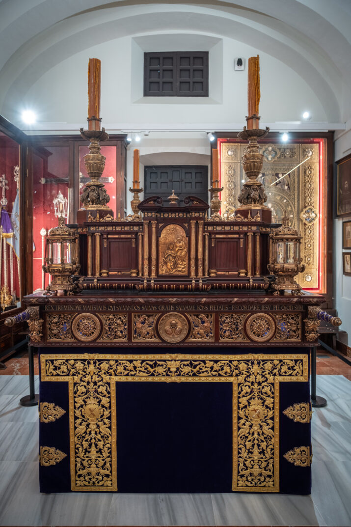 Bajo la dirección técnica del catedrático de Historia del Arte D. Andrés Luque Teruel, el nuevo “paso” ha sido ejecutado, en lo que se refiere a la carpintería en caoba y ébano, por el taller de D. Oscar Caballero, y por lo que respecta a la orfebrería en bronce, por los hermanos Pedro y José Manuel Ramos, de larga trayectoria en la Hermandad, colaborando este último además en los dibujos en el taller; con tallas en los respiraderos de D. Miguel Ángel Domínguez y en los bajo relieves centrales del canasto, de D. Guillermo Martínez Salazar, profesor titular del Departamento de Escultura de la Facultad de Bellas Artes. En los bordados de los faldones, estrenados ya con anterioridad, intervino el taller de Santa Bárbara.