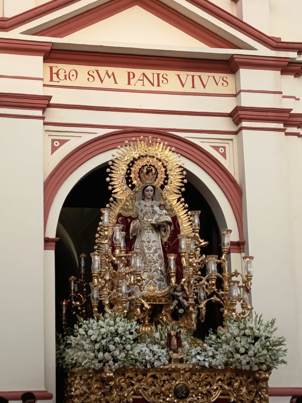 A las 7 de la tarde de ayer, Ntra. Sra. del Rosario de Mairena del Aljarafe cruzaba el dintel de la puerta de la parroquia de San Ildefonso, para bajar a la plaza de Blas Infante abarrotada de público, como ocurrió durante todo el recorrido.