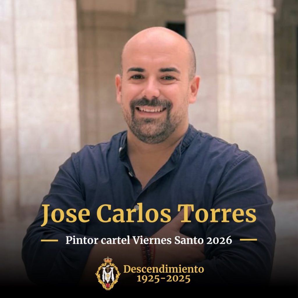 La Hermandad Sacramental y Real Cofradía de Nazarenos Del Sagrado Descendimiento de Nuestro Señor Jesucristo, Nuestra Señora del Santo Sudario y Maria Santisima de las Angustias ha hecho público que la Junta de Gobierno de esta corporación ha designado a D. José Carlos Torres para realizar el cartel de su Estación de Penitencia del próximo Viernes Santo 2026.