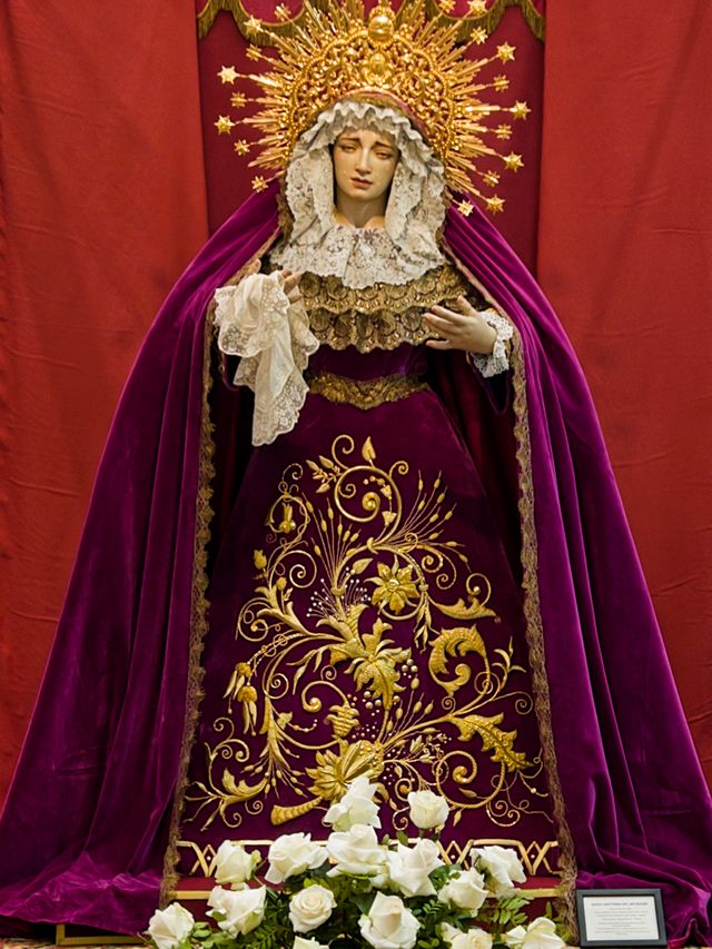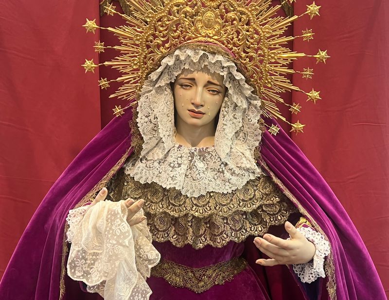La Virgen, de mirada verde agua, cautivó por su serenidad y su fuerza interior, transmitiendo la espiritualidad que caracteriza el estilo del autor. Fue vestida para la ocasión por el reconocido Manolo Chacón, con la diadema cedida por la Hermandad de Pasión para la Virgen del Amor, un gesto de generosidad que subrayó el carácter