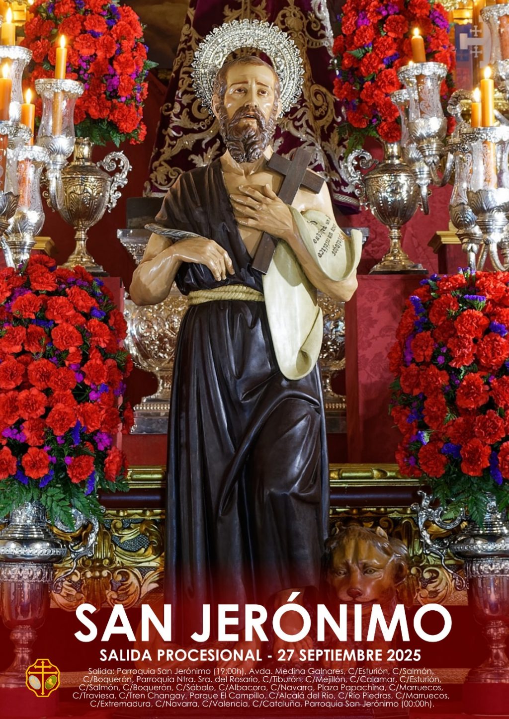 • El sábado día 27 de septiembre tendrá lugar (D.m.) la salida procesional del Santo Patrón recorriendo las calles de su Barrio de San Jerónimo, en horario de 19:00 a 24:00 horas desde la parroquia de San Jerónimo.