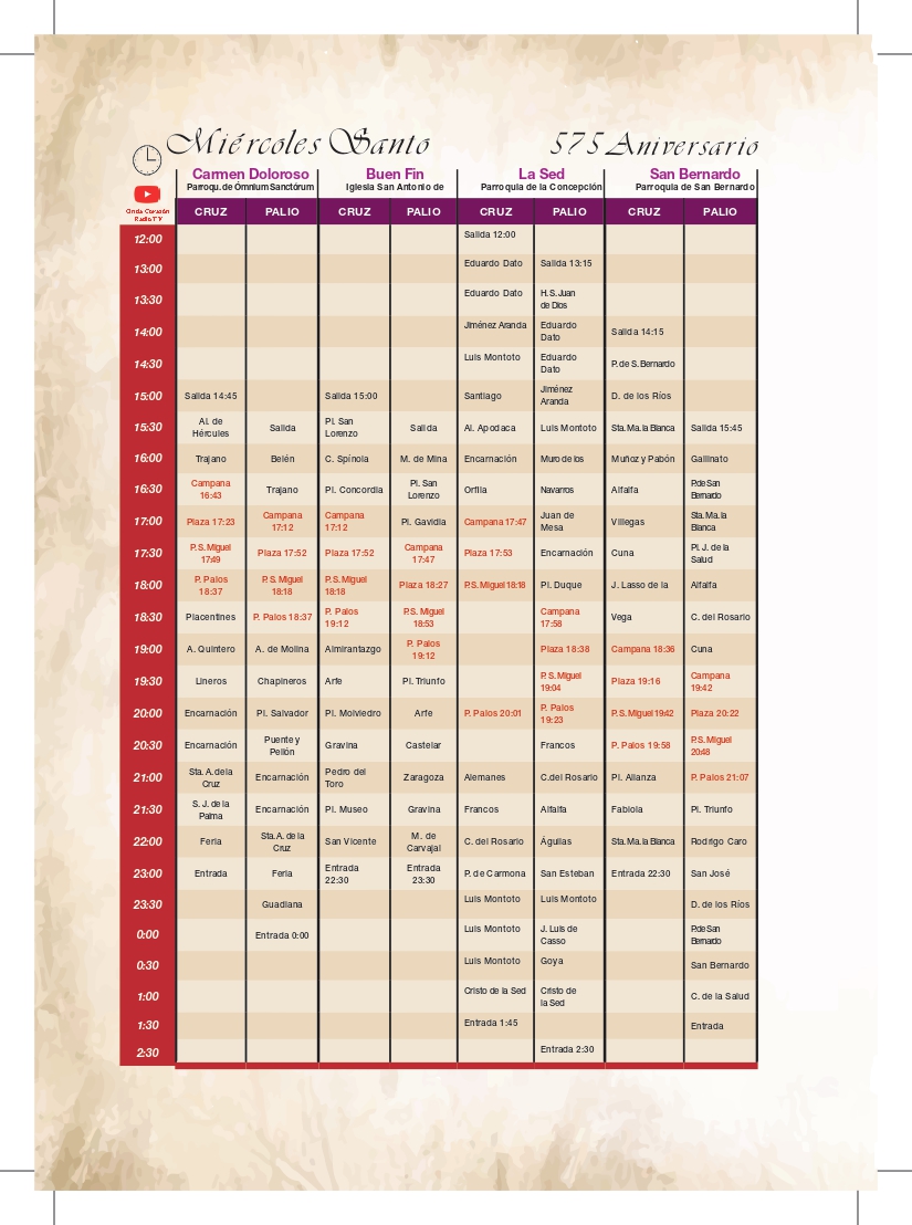 Comunicado de la Hermandad de San Bernardo ante el Miércoles Santo para evitar interrupciones en el discurrir de los pasos